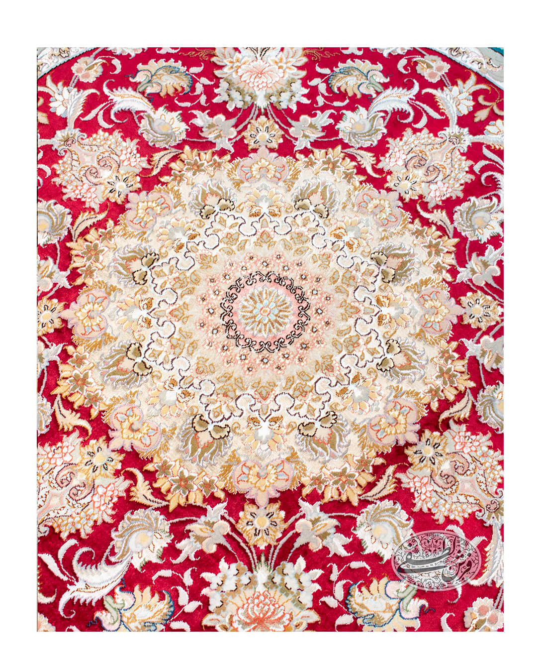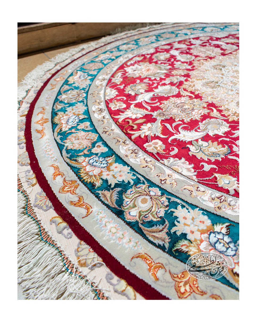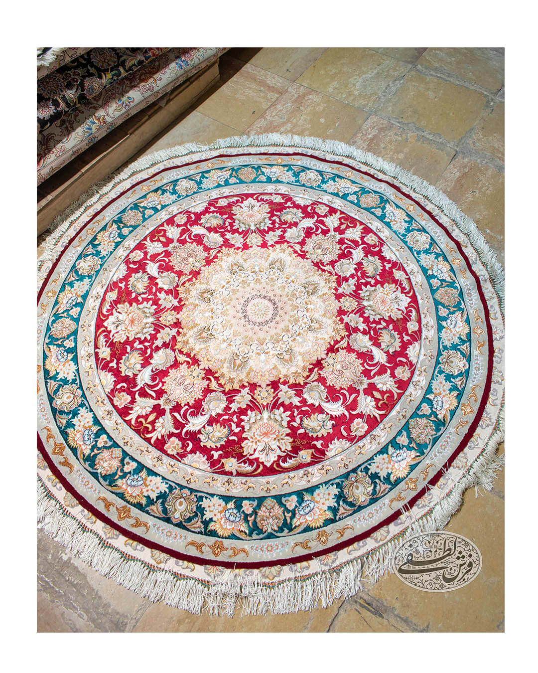 همانطور که در قسمت عنوان نیز مشخص هست ، طراح این محصول استاد نام آشنای تبریزی جناب آقای خطیبی می باشد. استفاده از چله ابریشم در دایره طرح خطیبی باعث شده این محصول بسیار مناسب برای پاخوری مداوم در زیر پا نباشد. و از آن بیشتر در قسمت پذیرایی و مکان هایی با تردد کمتر استفاده کرد . همچنین با استفاده از ابریشم در عمده قسمت های این فرش گرد. میتوان آنرا در گروه فرش های ظریف و ابریشمی نیز جای داد. قسمت های حاشیه ، متن ، ترنج ، و تمامی گل ها و قاب ها از جنس ابریشم می باشد.