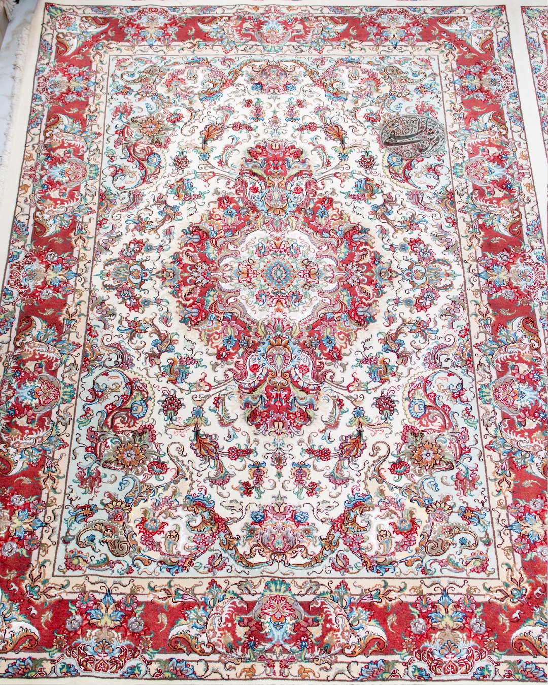 فرش خطیبی جفت شش‌متری با پشم مرینوس و گل ابریشم